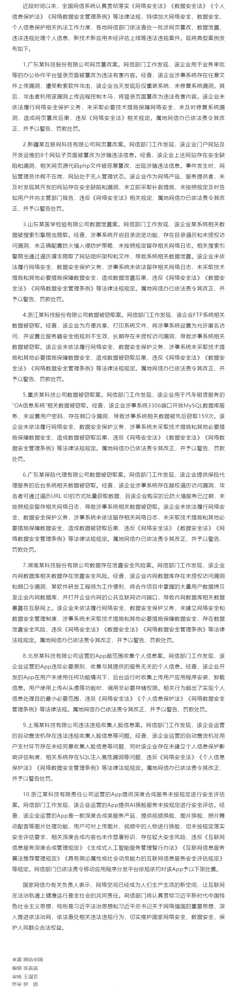 2025年国家网络安全宣传周丨国家网信办发布近期网络安全、数据安全、个人信息保护相关执法典型案例