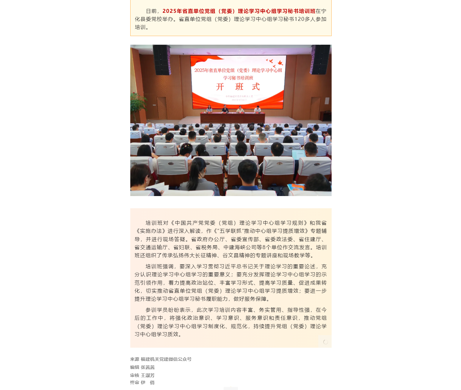 培训动态|2025年省直单位党组(党委)理论学习中心组学习秘书培训班举办