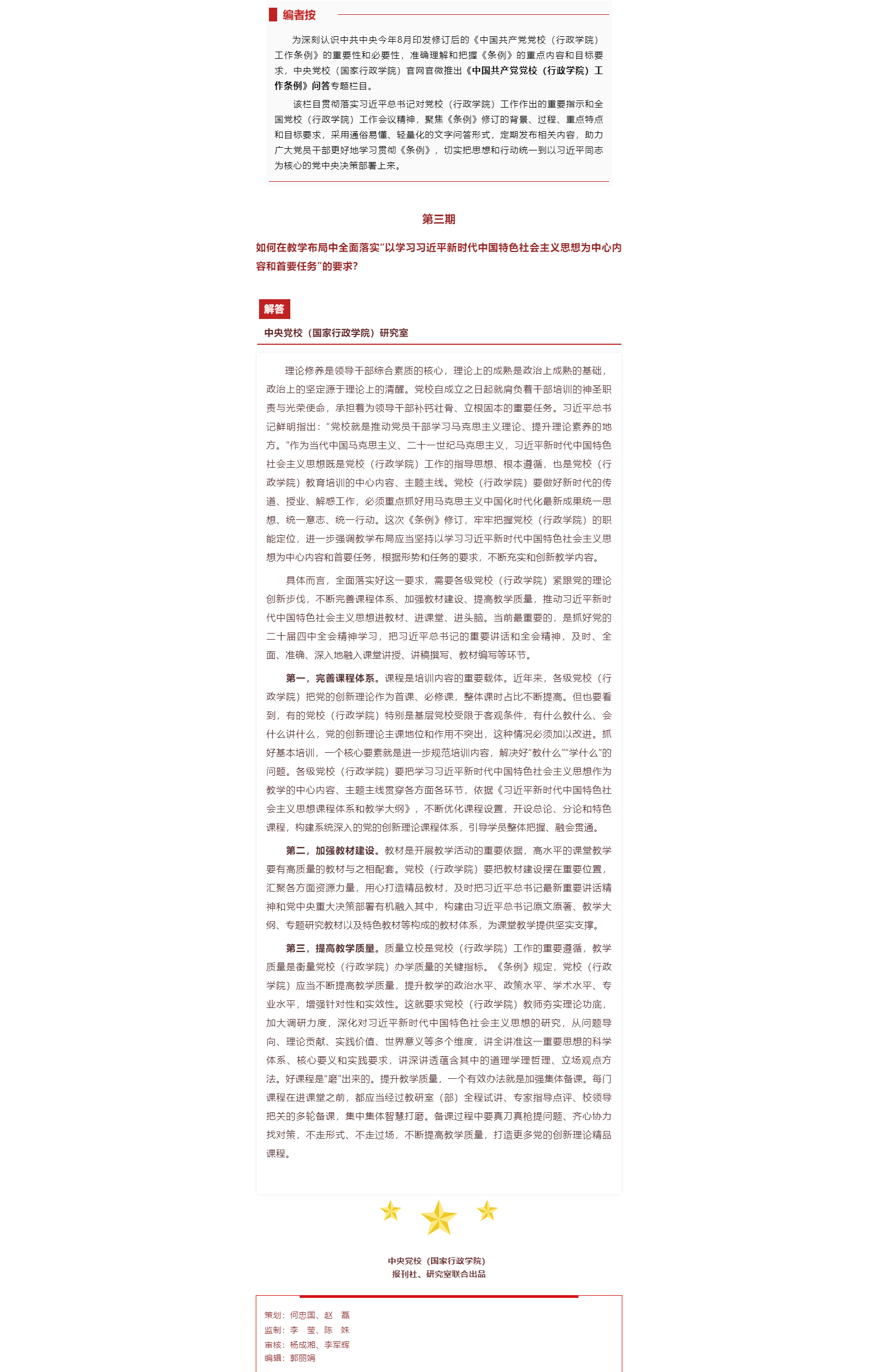 学习《条例》|如何在教学布局中全面落实“以学习习近平新时代中国特色社会主义思想为中心内容和首要任务”的要求?