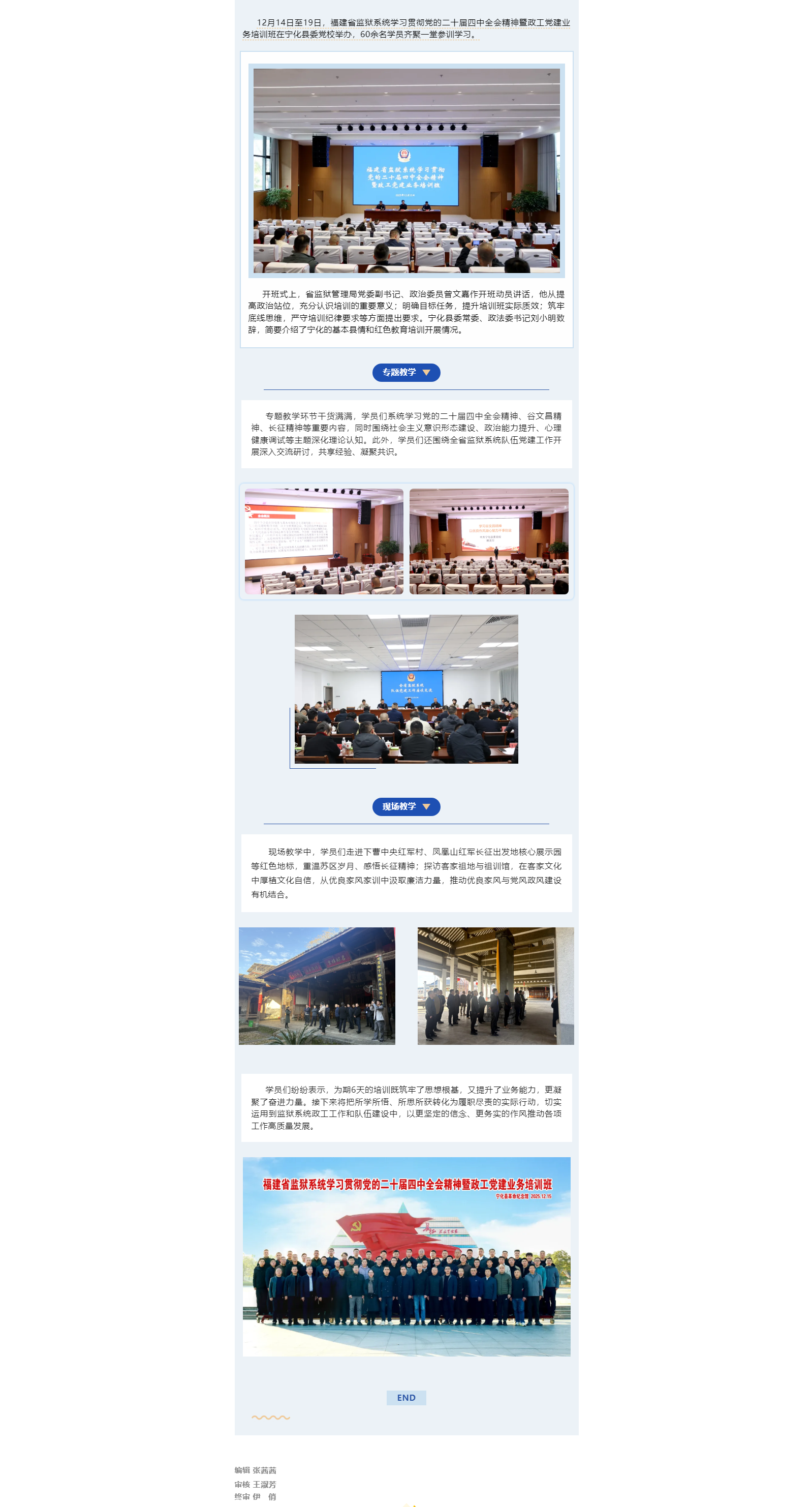 培训动态|福建省监狱系统学习贯彻党的二十届四中全会精神暨政工党建业务培训班在宁化举办