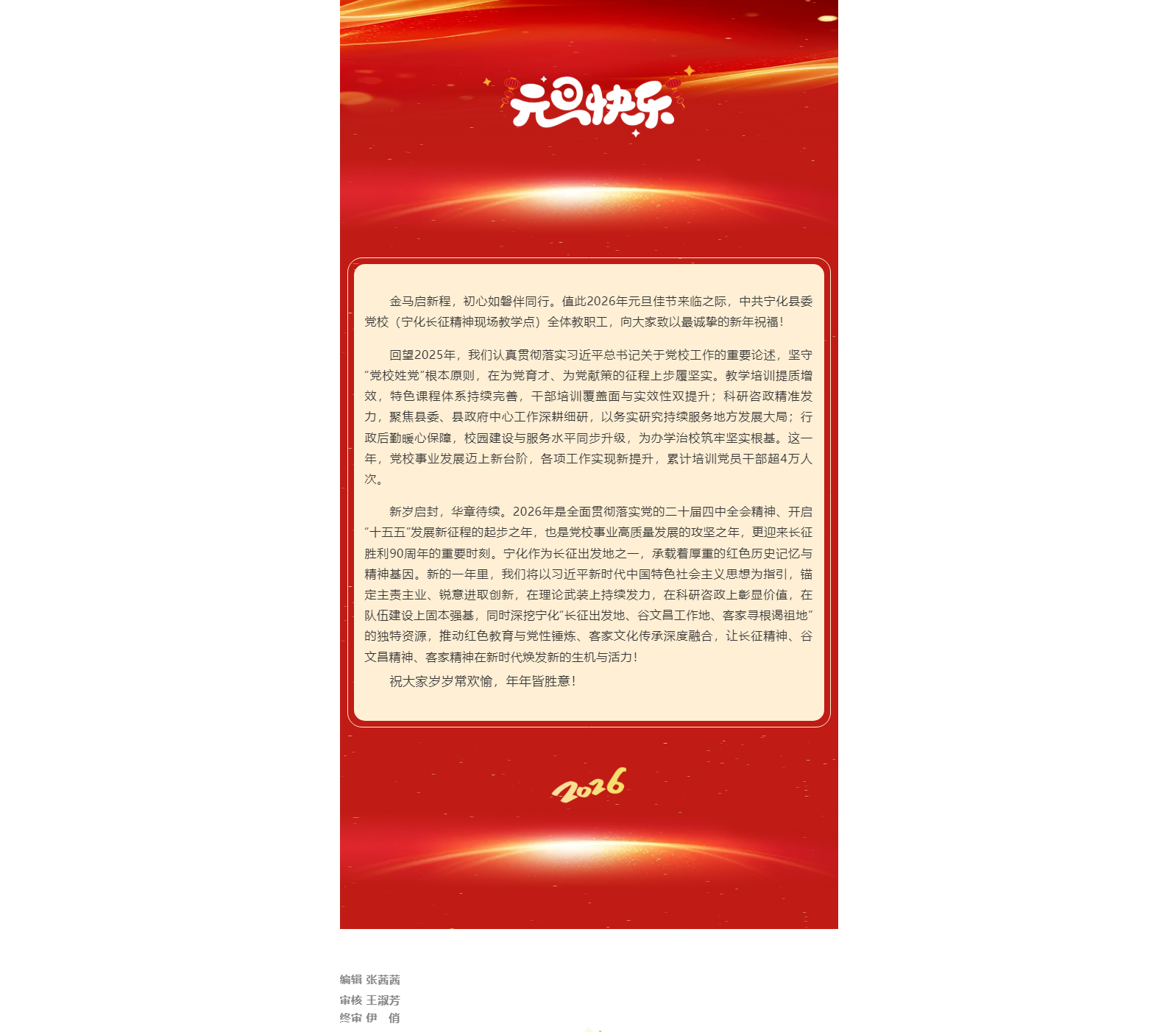 凝心铸魂启新程 为党育才谱新篇——中共宁化县委党校2026年新年贺词