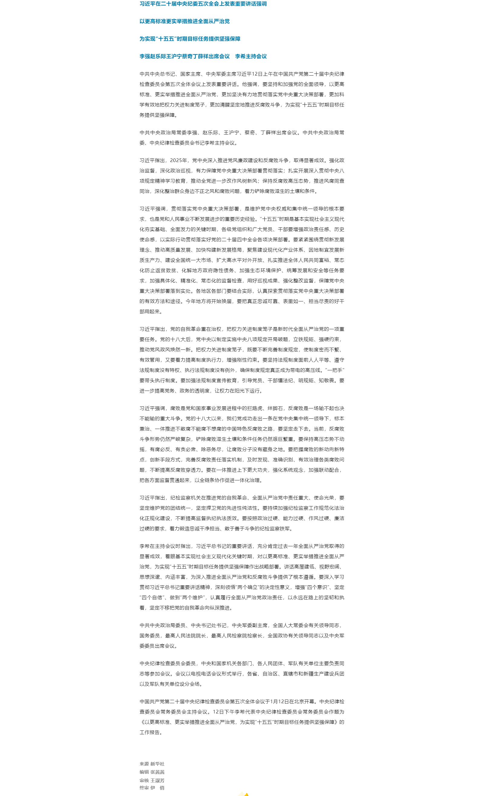 习近平在二十届中央纪委五次全会上发表重要讲话