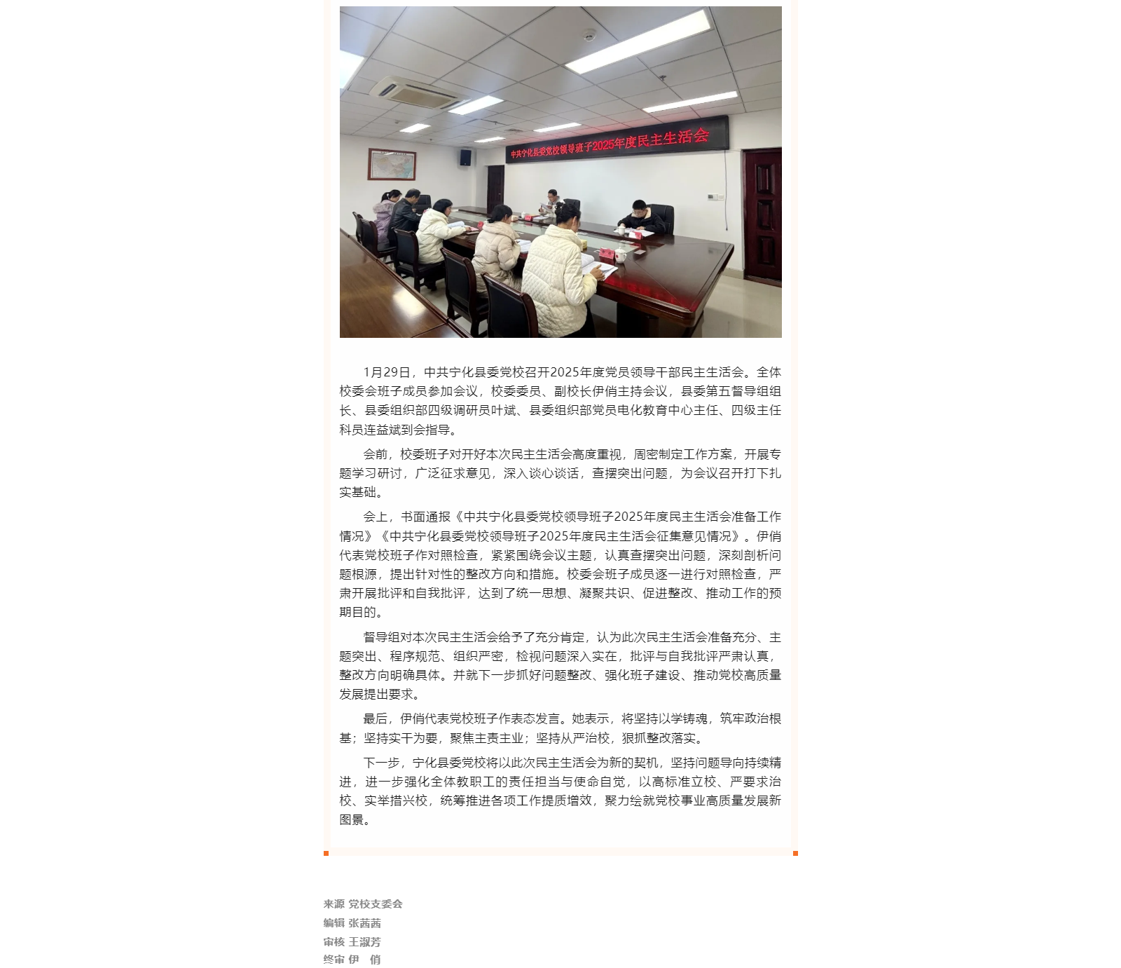 党校动态|中共宁化县委党校召开2025年度党员领导干部民主生活会